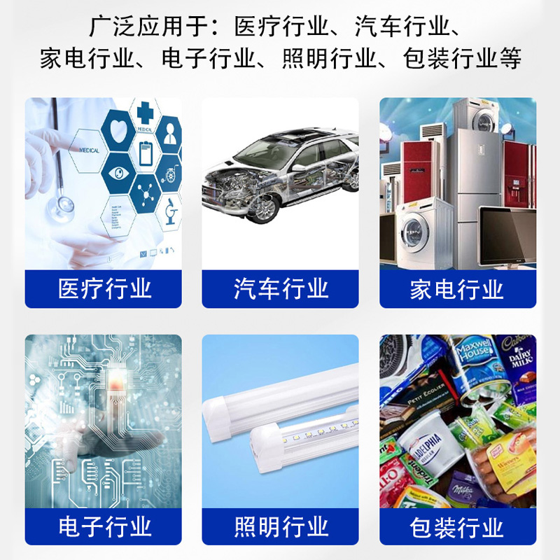 應用行業(yè):汽車、醫(yī)療、電子、家電、照明、包裝等行業(yè);